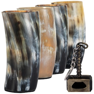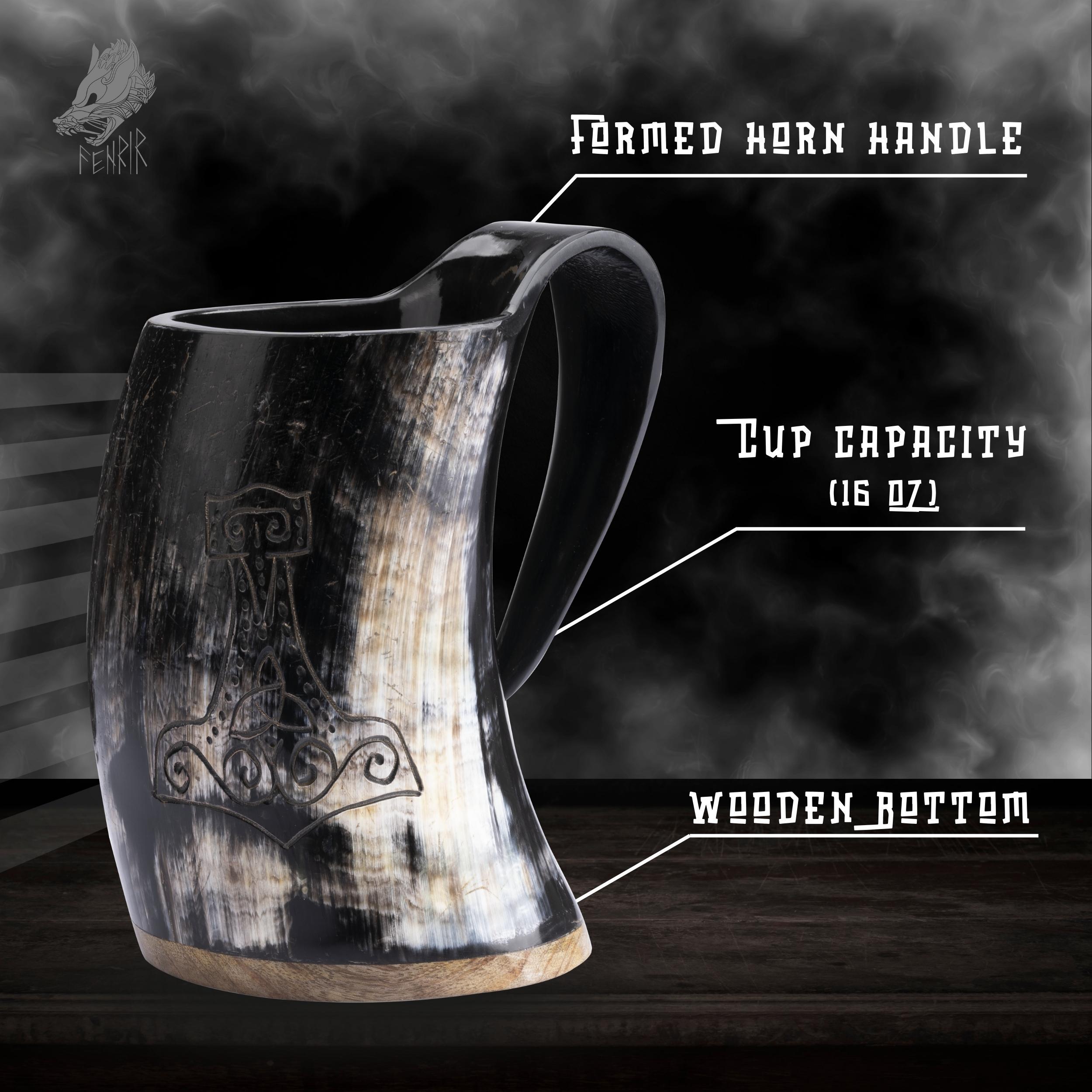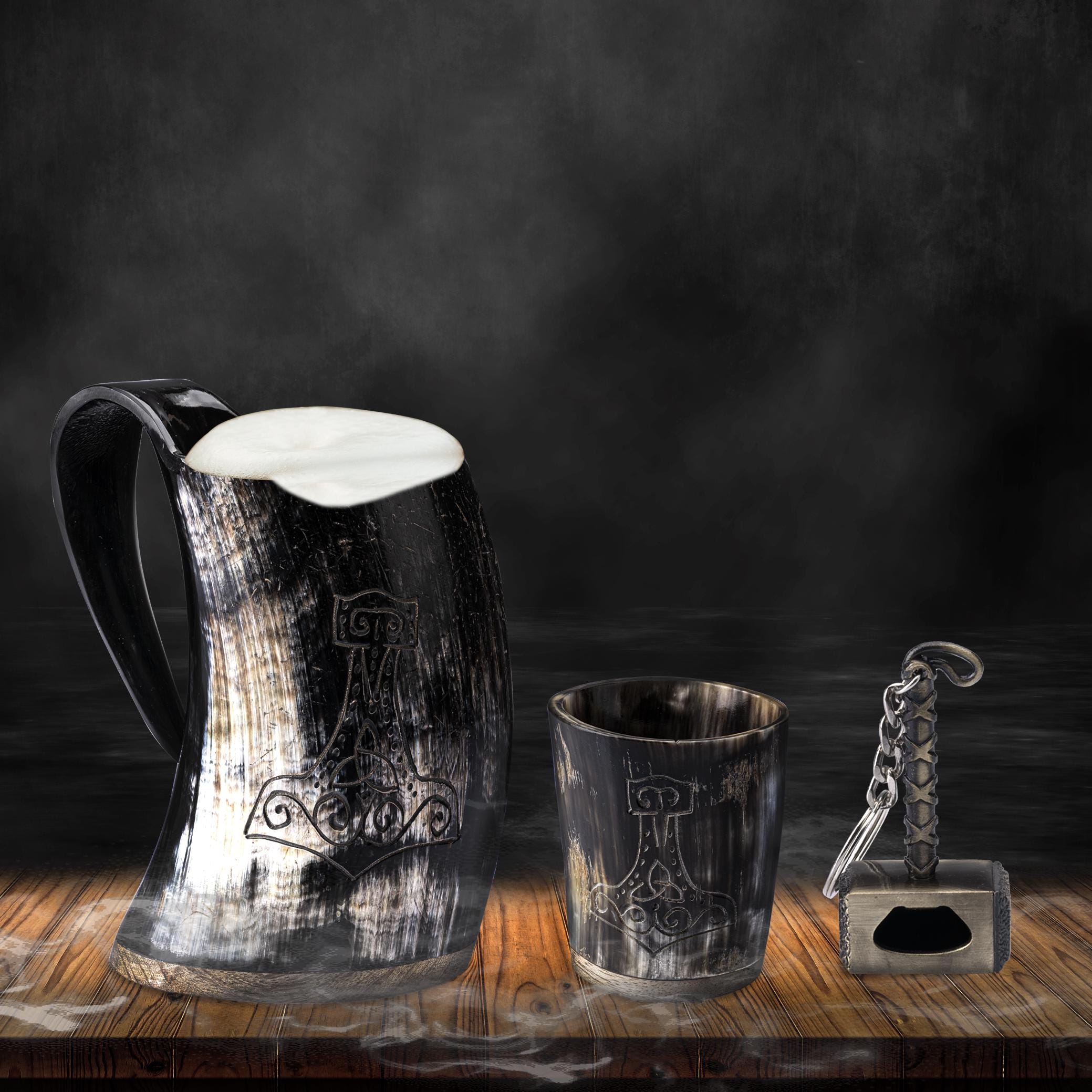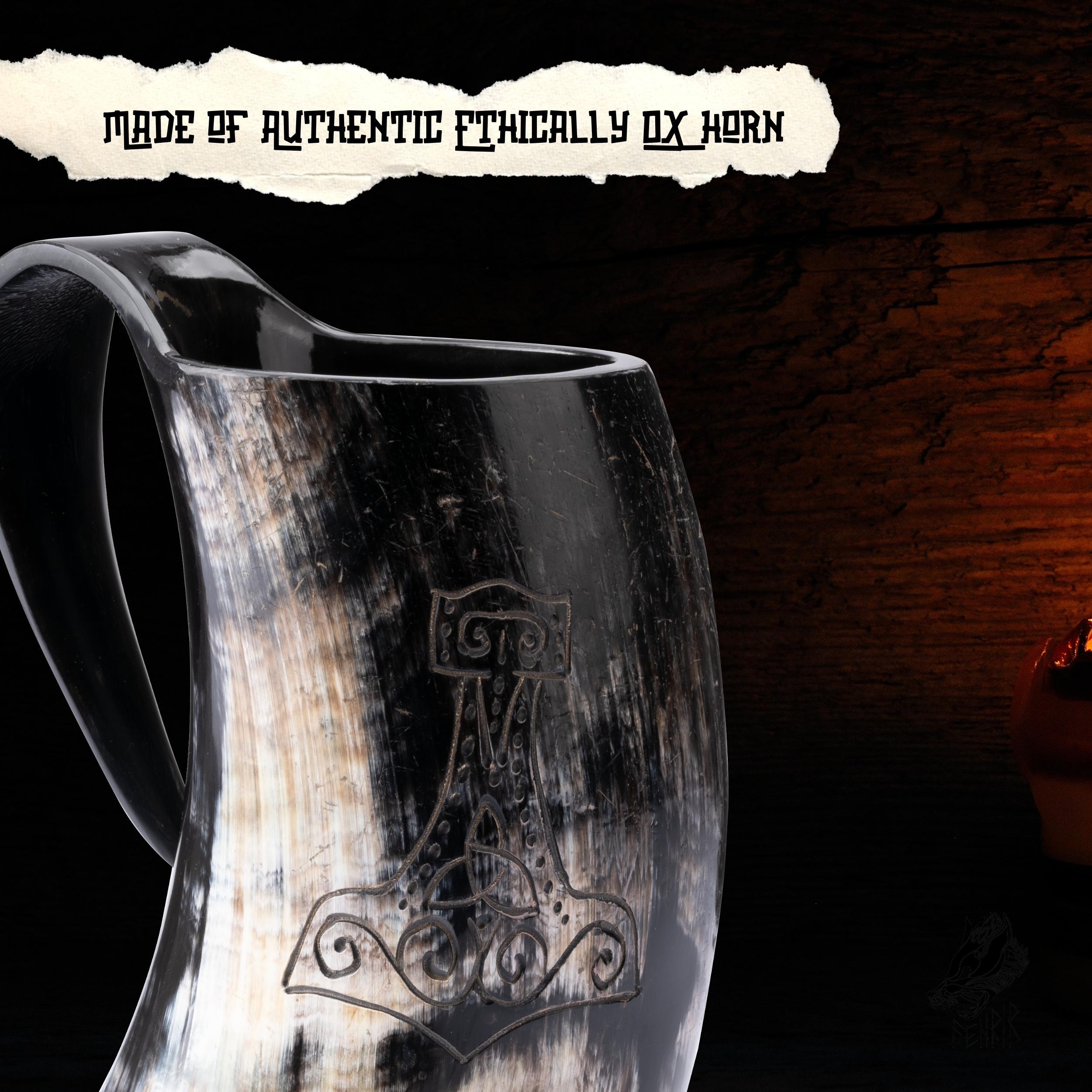 FENRIR VIKING DRINKING HORN MUG SET - The Fenrir viking drinking horn mug set is a combination that includes a Fenrir viking horn mug with a bottle opener that are stylish and durable viking horn products. UNIQUE HANDMADE OX HORN PRODUCT - Crafted from 100% authentic and ethically sourced ox horn, each FENRIR viking drinking horn mug is a testament of superior craftsmanship. Brace the spirit of the Norse with our handcrafted medieval style natural beer mugs. A PERFECT ALL-SEASON GIFT FOR MEN – A perfect gift for your husband, dad, or buddy on Christmas, New Year, Father’s Day, birthdays, or anniversaries. It’s a memorable way to celebrate any man who appreciates handcrafted quality and Norse-inspired design